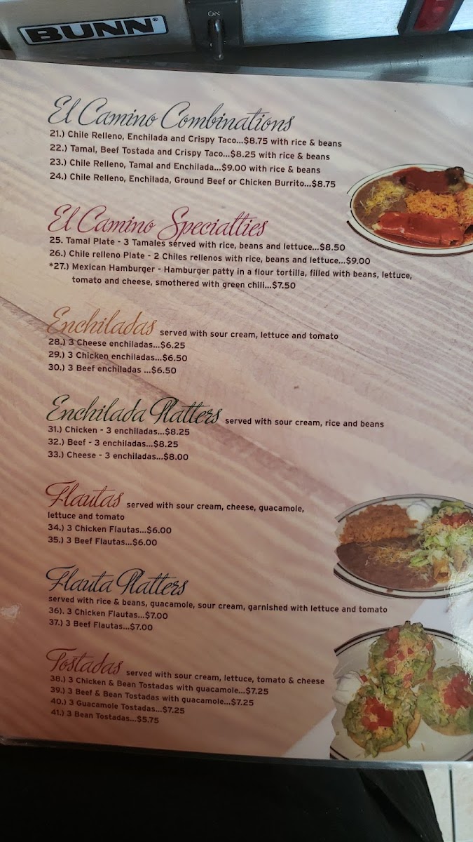 Welcome to El Camino - Aurora, a cherished gem nestled in Aurora, Colorado. This vibrant restaurant serves up an extensive menu that showcases authentic Mexican flavors. Highlights include the mouth-watering Flauta Platter, featuring either three chicken or shredded beef flautas, accompanied by beans, rice, guacamole, and sour cream—all for just $10.00.